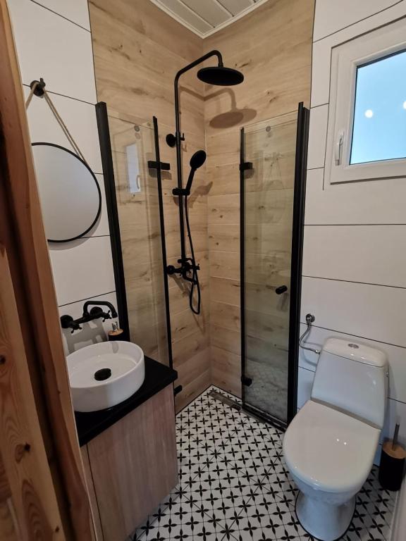 - Badezimmer mit Toilette (Duschkabine, Waschbecken)