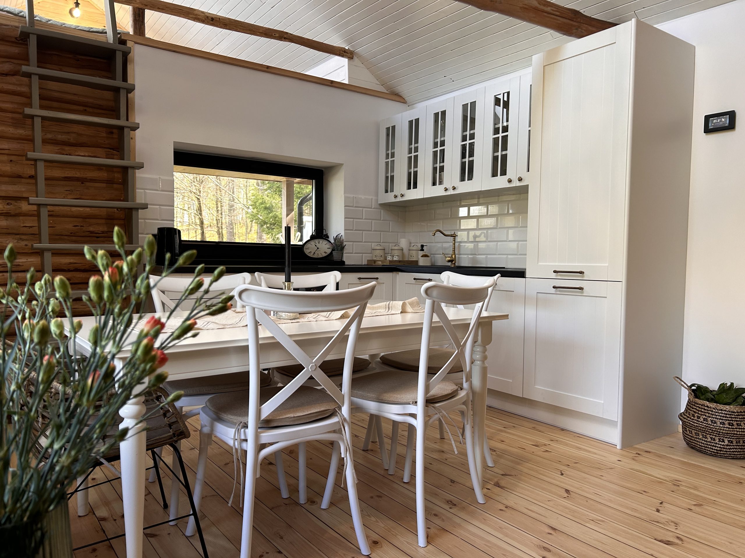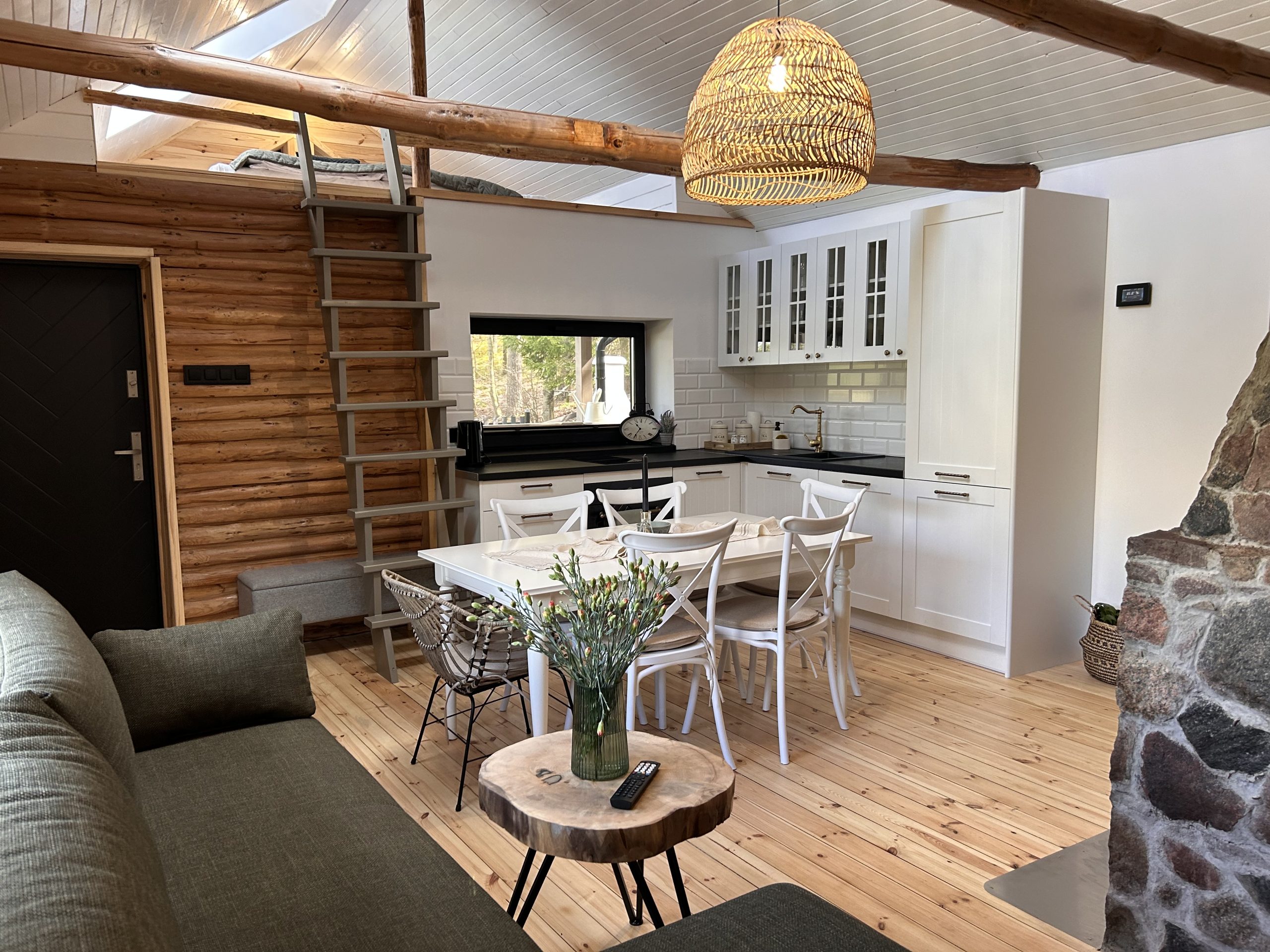 Entdecken Sie den Charme des Ferienhauses Stasiu, versteckt inmitten der Natur, direkt am Wald und einem weitläufigen Feld. Obwohl etwas vom See entfernt, bietet dieses charmante Ferienhaus ein unvergessliches Naturerlebnis und Ruhe. Das Innere des Hauses strahlt Gemütlichkeit aus, und von der Terrasse aus hat man einen Blick auf malerische Landschaften, die jeden verzaubern werden. Die Abende, die Sie hier am Kamin oder auf der Terrasse unter dem Sternenhimmel verbringen, umgeben vom Gesang der Vögel und dem Rauschen der Bäume, werden Ihnen für immer in Erinnerung bleiben. Es ist ein Ort, der mit seinem Charme lockt und dazu einlädt, wiederzukommen, um erneut seine magische Atmosphäre zu genießen.